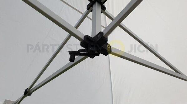 Naše stany mají pevné střešní výztuhy. Ty zajišťují optimální napnutí a upevnění střešní plachty, čímž je umocněna celková stabilita stanu a naše stany jsou díky tomu velice odolné a pevné. Uprostřed konstrukce je umístěna klika, díky které snadno roztáhnete - vyšroubujete konstrukci. Tento mechanismus Vám velmi usnadní práci při stavbě stanu a zkrátí dobu stavění oproti konkurenčním stanům se střešními systémy bez klikového mechanismu.